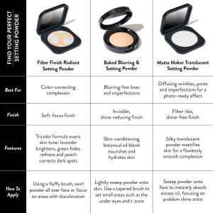 Keep your skin and makeup fresh for hours. Set and perfect your look with this weightless baked silk blurring powder that reduces the appearance of shine.
